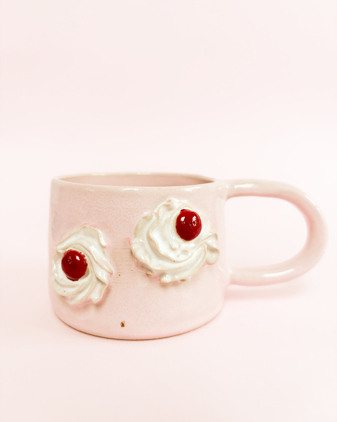 Hånddrejet kop med flødeskum og kirsebær